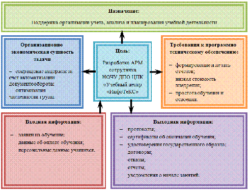 является создание АРМ для учета, контроля и планирования деятельности НОЧУ ДПО