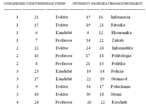 NUMBER(3)CodkafedriId_fy references(CodkafedriId),NUMBER(3)CodsotrudnikaID_fy