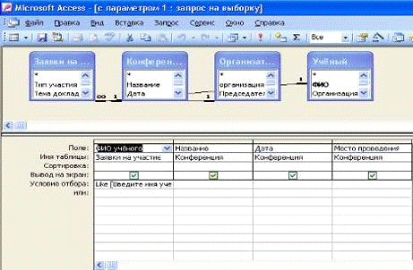том что при создании запроса в поле Условие отбора пишется: например, под полем