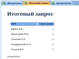 При нажатии в списке отчетов на кнопку отчет (к примеру, «Дисциплина»)