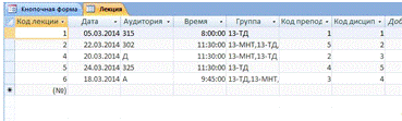 При нажатии в списке форм на кнопку форма (к примеру, «Лекция»)