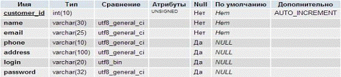 таблица магазин сервер база данных
