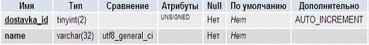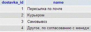 .3 Таблица способов доставки