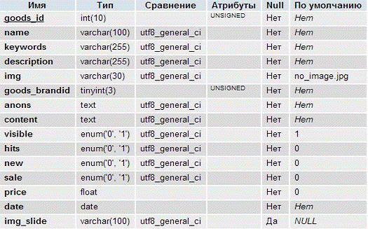 ) goods_id - ключ товара, тип данных int(10) unsigned AUTO_INCREMENT