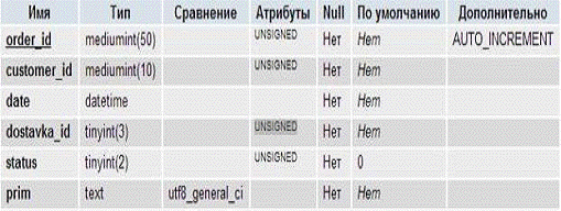 .5 Таблица заказов