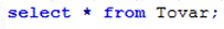 CREATE TABLE Tovar(text(15) not null,real(10,2)