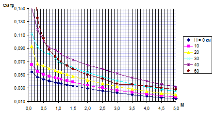 коэффициент сопротивления трения плоской пластины; на высотах 40, 60 км наблюдается