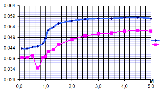 зависящего от него коэффициента лобового сопротивления также наблюдается