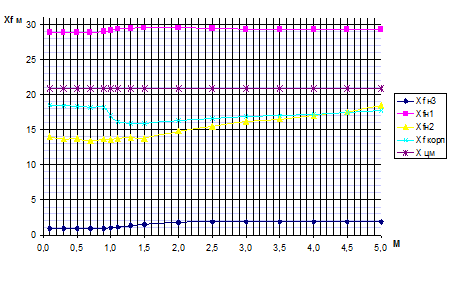 координаты фокуса ЛА от числа Маха и центр масс ЛА