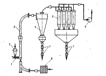 сушке порошкообразных или дробленых материалов удаляемый из сушилки воздух