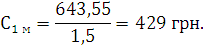 нормируемым затратам. Стоимость 1 м выработки равна 429 грн.