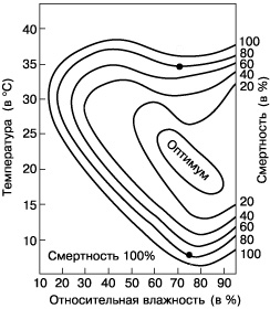 влажности», укажите пределы выносливости вида, диапазоны температуры и