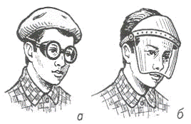 окуляри; б - захисний щиток (забрало)