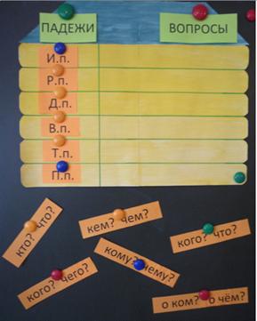 помощью карточек с названием падежей. Обратить внимание на окончание имен