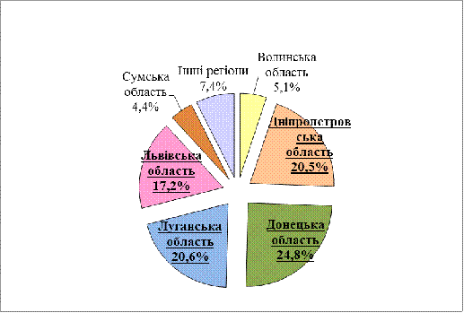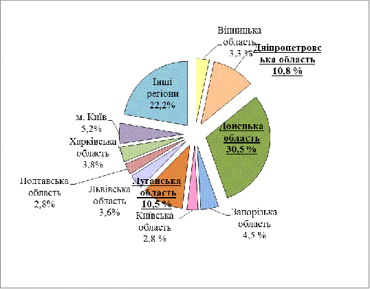 (30,5%), Днепропетровской (10,8%) и Луганской областях (10,5%). Количество