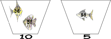 сложение и вычитание. Имеются кормушки с цифрами 5 и 10.