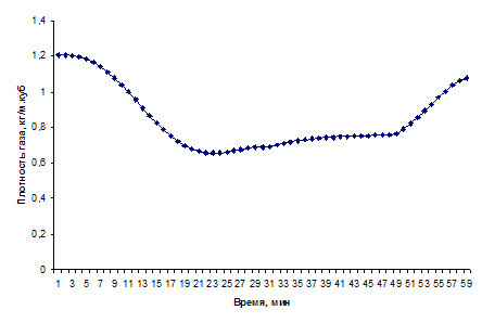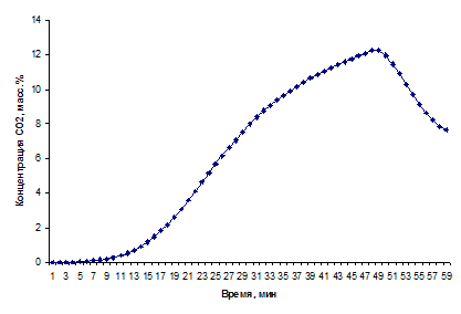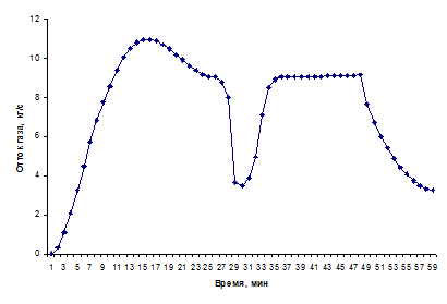 газообмена в помещении в момент времени 11 минут