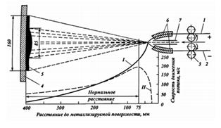 Рисунок 4.2. Схема электродуговой металлизации:- график скорости струи