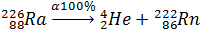распадом радия на изотопы радона (газ), который сопровождается 100%