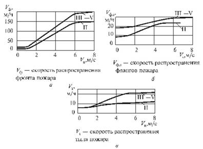 скорости ветра Vв, м/с и группы леса по загораемости приведены на рис. 4.3.1,