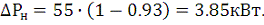 Номинальная потеря мощности на валу электродвигателя