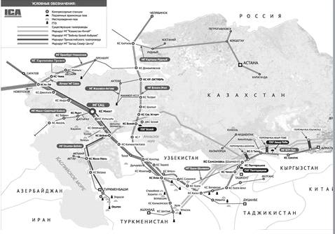 Схема магистральных газопроводов Казахстана.