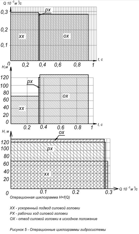 функционирование гидросистемы по операциям цикла. Подсчитаем величины этих