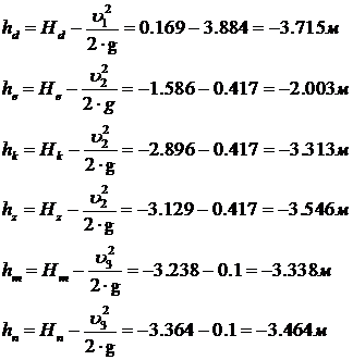 в точках a, b, c, d, e, k, z, n и построить напорную и пьезометрическую линии;