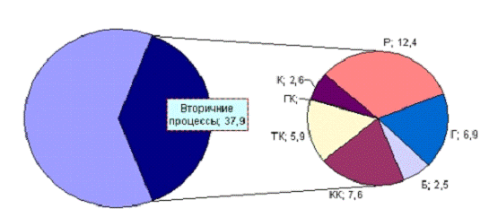 5,6 % на гидрокрекинг. Из этих данные видно,что первое место по суммарной