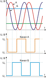 вторая последовательность импульсов - канал Б с фазовым смещением относительно