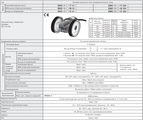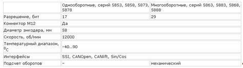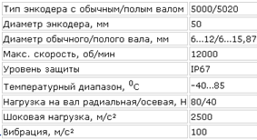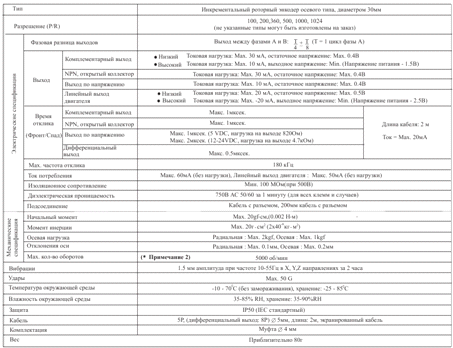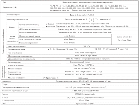 Таблица 1 Технические характеристики Энкодера
