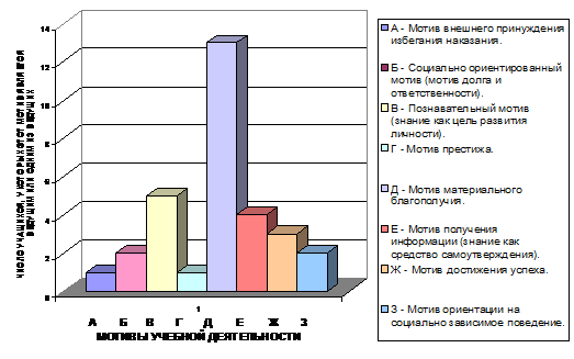 основным мотивам учебной деятельности. Каждый из восьми мотивов обозначается