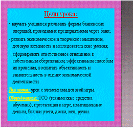 банковской системой, а также методика преподавания данной темы на уроках экономики