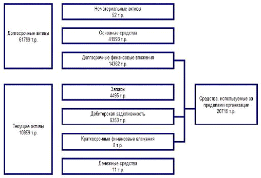 Как видно из схемы, описывающей структуру активов предприятия, в начале и