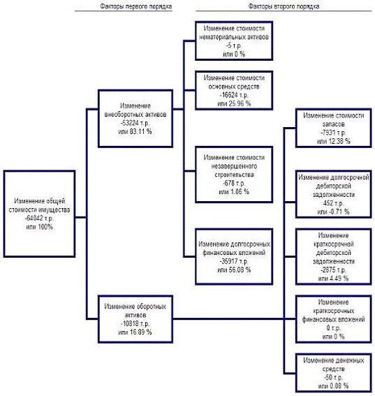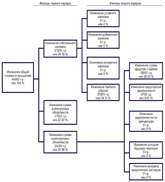 Уменьшение активов на 64042 тыс. руб. сопровождается одновременным