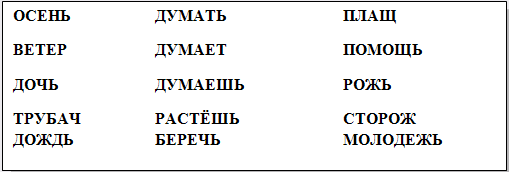 слова понятны? Теперь каждый про себя прочтите первое слово. У него на конце