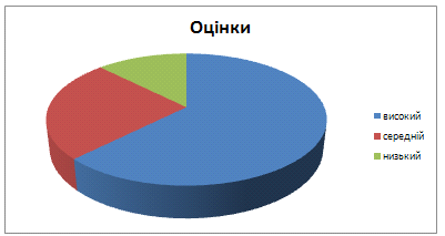 високі оцінки, двоє - середній рівень, один учень - погано впорався із