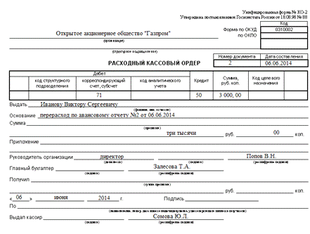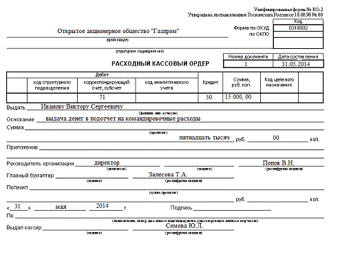 ОАО «Газпром» работнику Попову В. С. были выданы денежные средства из кассы