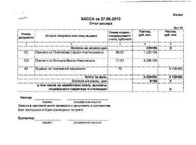 с данными кассовых документов и фиксировать своей подписью сумму остатка