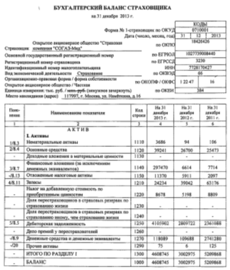 Бухгалтерский баланс ОАО Страховая компания