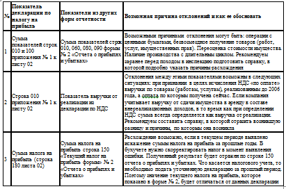 Контрольные соотношения показателей декларации