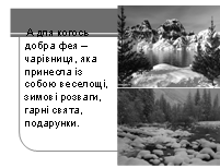 класі: білесенькі сніжинки, новорічна ялинка, казкові звірі. Якої пори року це