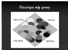 Розглянемо палітру пір року. Назвіть кольори зими і складемо
