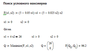 с помощью программы Mathcad 13. Вводим максимизируемую функцию и заданное