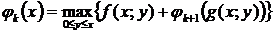 максимум целевой функции на k-м шаге)