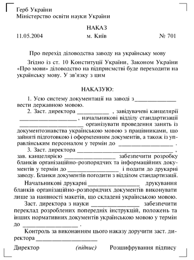 Накази - основна форма документування розпорядчої діяльності на підприємствах