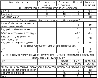 учителів початкових класів до розвитку творчих можливостей молодших школярів у