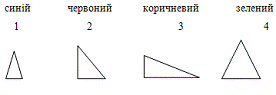 (кольором, формою, розміром)? Що у них спільного (три кути, три сторони, три