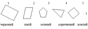 чотирикутником? Назвіть її номер. Чим відрізняються фігури за номером 1, 5? Що