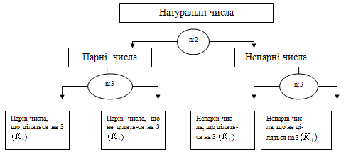 підмножиною другого: серед парних чисел є числа, не кратні 7, а серед кратних 7